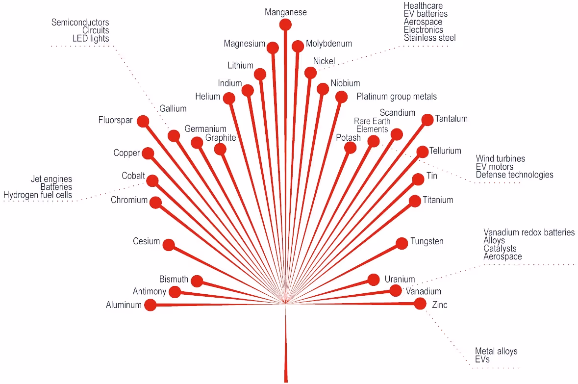 In Canada, 34 minerals and metals have been designated as critical by the federal government.